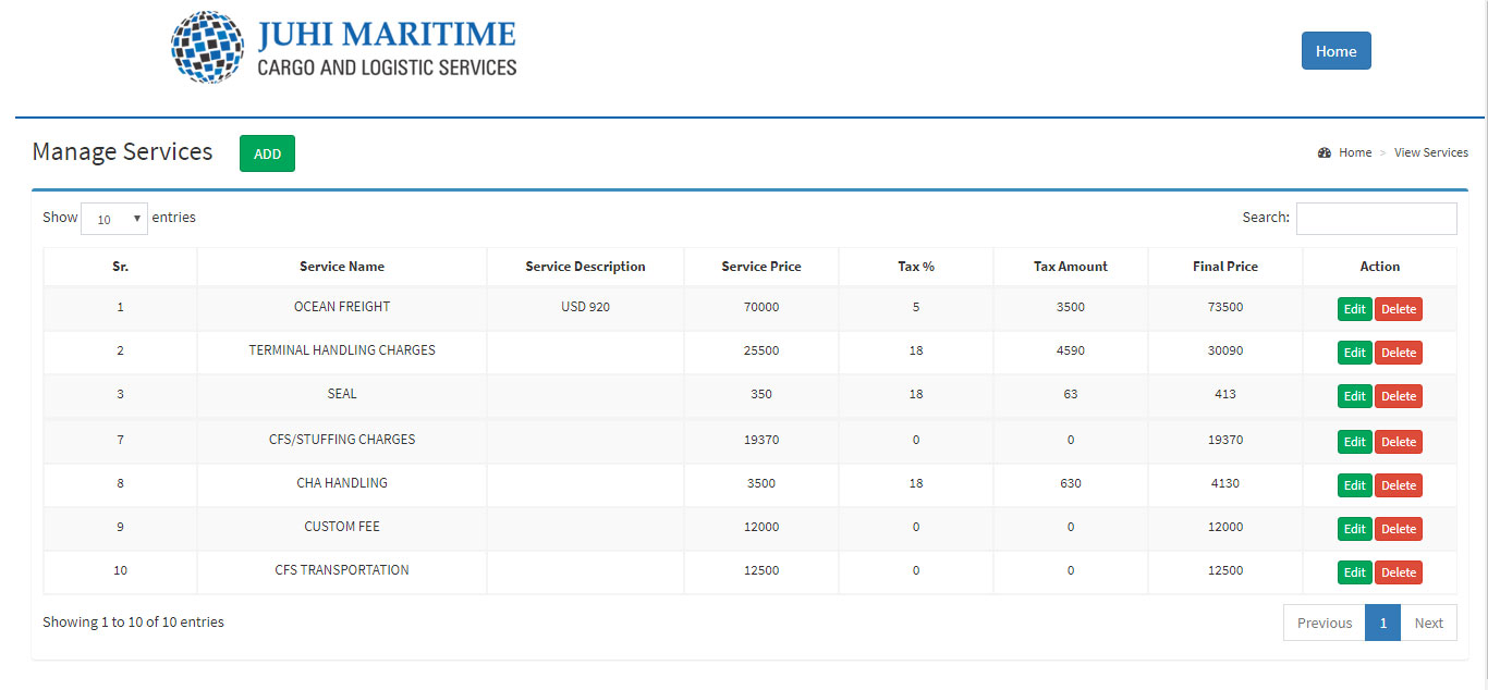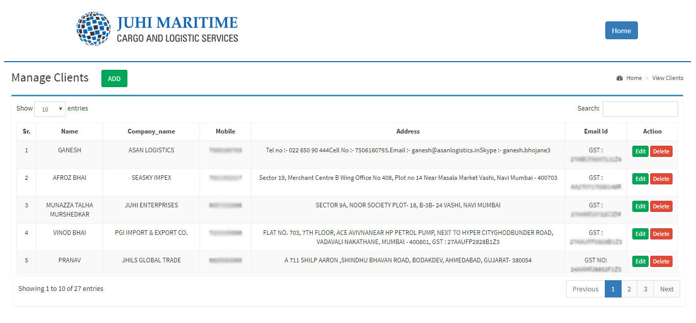 The Logistics software Modules are as follow :