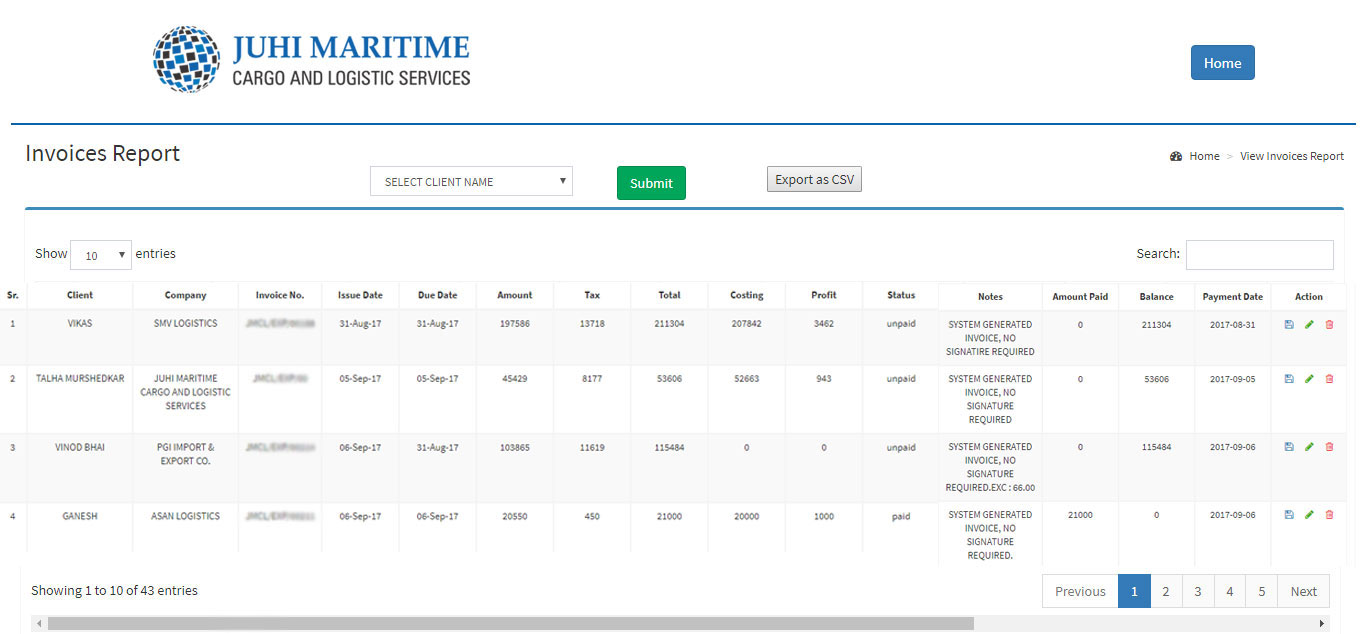 - Invoices Report